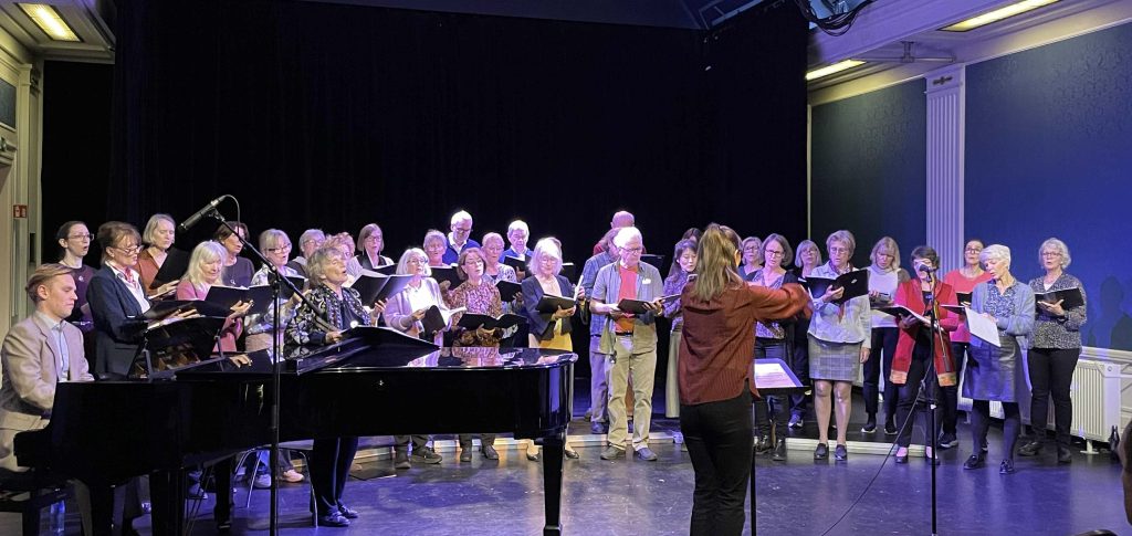 Vi koste oss og det håper vi publikum også gjorde! Artig med akkompagnatør og sangsolist og flinke fløyte og munnspill-solister. Og så mange gode kaker!